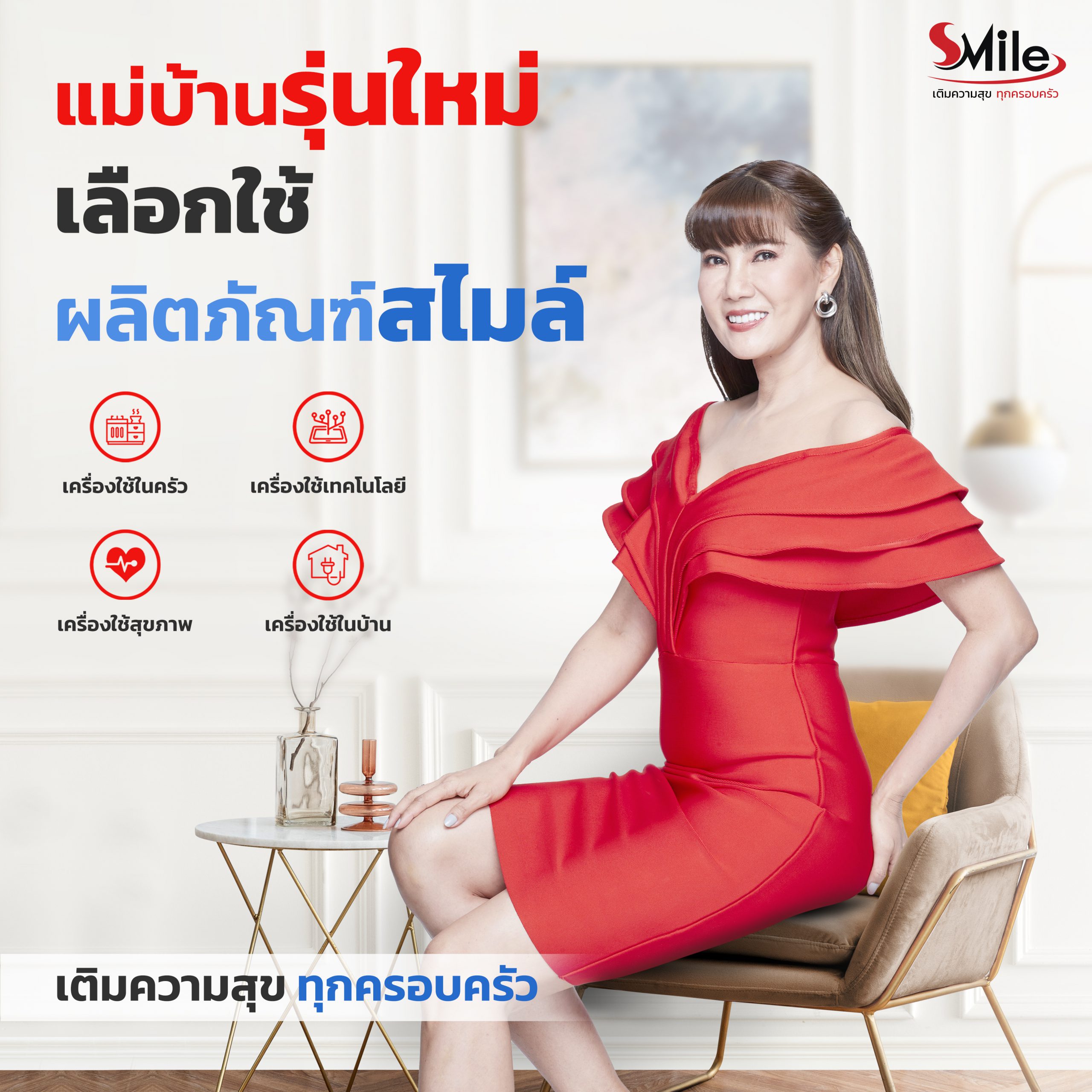 ให้กับตัวแทนจำหน่ายทั่วประเทศ ภายใต้แบรนด์ สไมล์ สมาร์ท และแซนเดอร์ ความสุขของสไมล์ เกิดจากแนวความคิดของผู้บริหารที่ต้องการนำเสนอผลิตภัณฑ์ที่สร้างรอยยิ้มให้กับทุกคน เริ่มจากการออกแบบที่คำนึงถึงมาตรฐานความปลอดภัยใช้วัสดุคุณภาพสูงจากต่างประเทศมีดีไซน์รูปลักษณ์ที่สวยงามเหมาะกับเป็นเฟอร์นิเจอร์ตกแต่งบ้านใช้งานสะดวกบ่งบอกถึงความทันสมัย ด้วยประสบการณ์เกือบสองทศวรรษของ ดร.บุญมา อิ่มวิเศษ ประธานกรรมการกลุ่มบริษัทในเครือสตาร์เวลล์ส่งผลให้วันนี้ สไมล์ กลายเป็นผลิตภัณฑ์ที่สามารถตอบโจทย์ความต้องการสำหรับผู้ที่นิยมชื่นชอบการเข้าครัวได้อย่างตรงใจ จนได้รับการตอบรับที่ดีอย่างรวดเร็วดาราสาวชื่อดัง “แก้ว อภิรดี ภวภูตานนท์” ได้เล็งเห็นถึงคุณสมบัติและประโยชน์อย่างครบครันของ ผลิตภัณฑ์ สไมล์ ทำให้อดใจที่จะเลือกใช้และตอบรับการเป็นพรีเซ็นเตอร์เพื่อการันตีสินค้าด้วยตนเอง จนกลายเป็นแบรนด์ แอมบาสเดอร์ ของผลิตภัณฑ์สไมล์